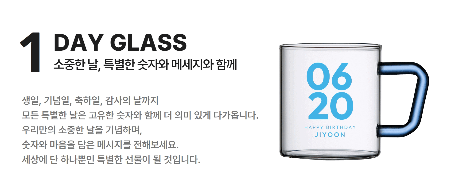 생일, 기념일, 사랑과 감사 등 다양한 문구들을 컵에 인쇄할 수 있습니다.